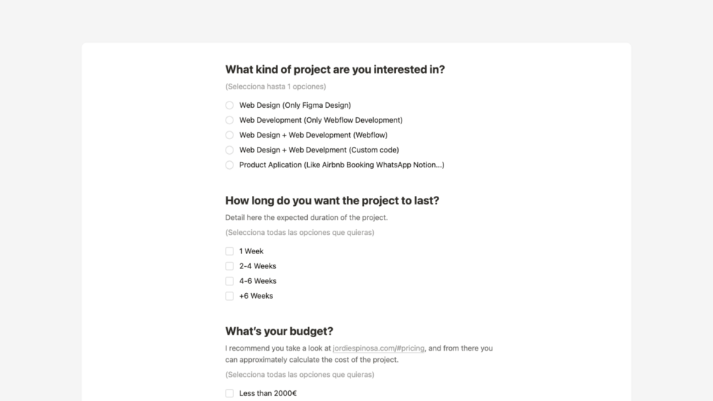 Gather all the necessary information from your clients to start a project with this Notion form.