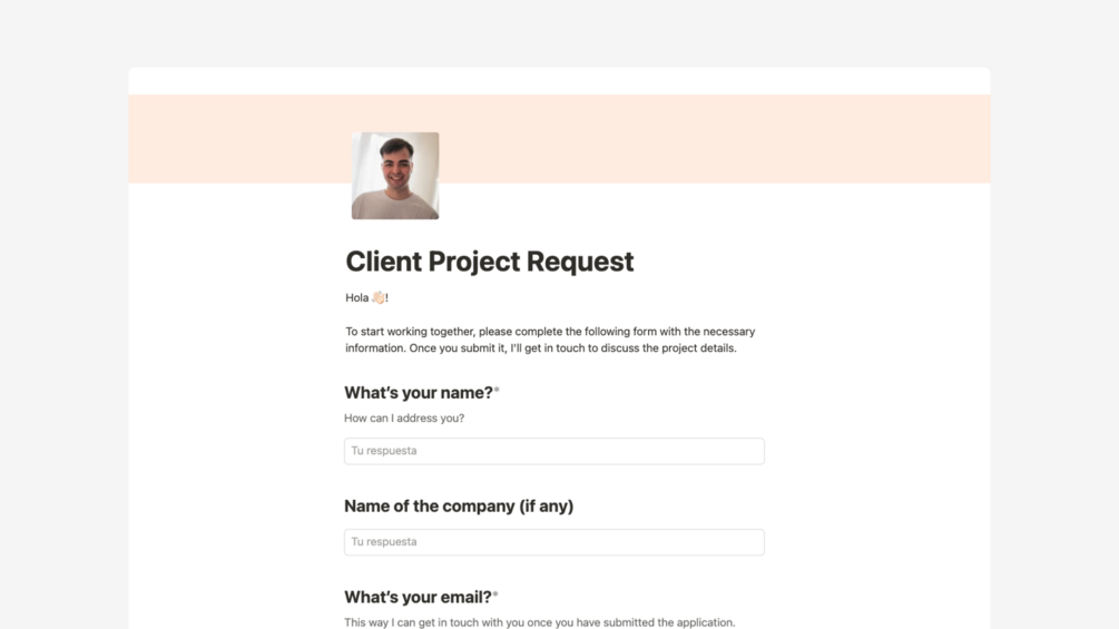 Gather all the necessary information from your clients to start a project with this Notion form.