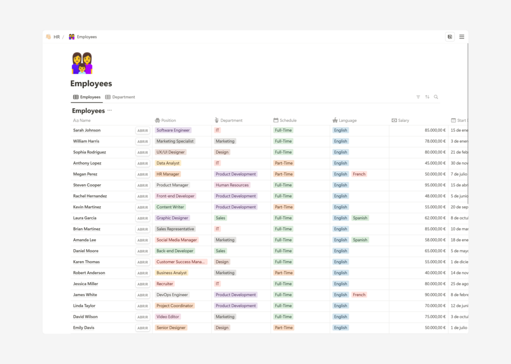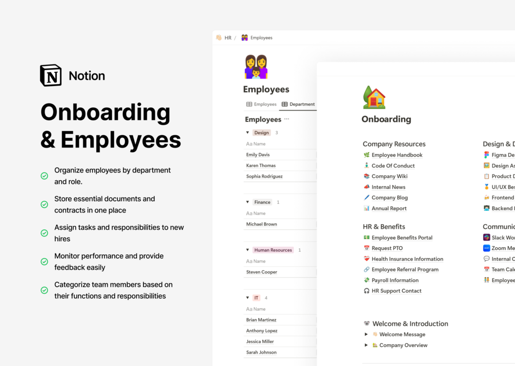 The Employees and Onboarding template simplifies the process of bringing new team members on board and managing your workforce. This template ensures a smooth transition for new hires and keeps employee management efficient.