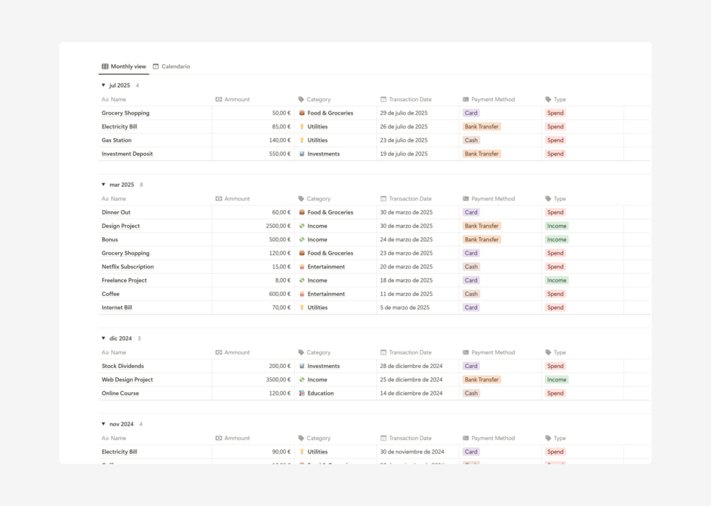 - Monthly and yearly financial summaries.